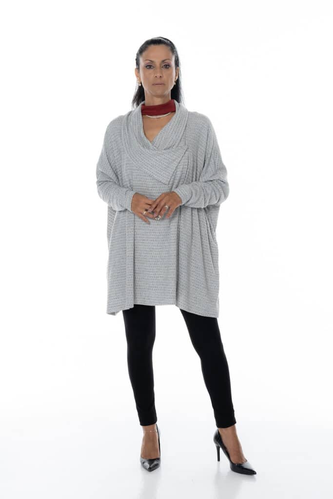 Μπλούζα πλεκτή ζιβάγκο με σχέδιο κοτσίδα 2224 – Γκρι