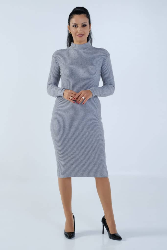 Φόρεμα ριπ midi με ψηλό λαιμό 2227 – Γκρι