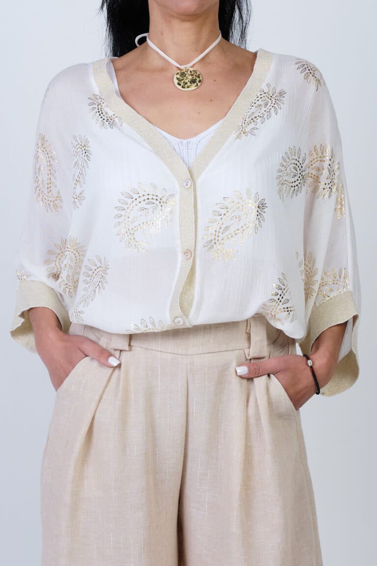 Μπλούζα μακρυμάνικη λευκή με V λαιμόκοψη 2219 – Λευκό