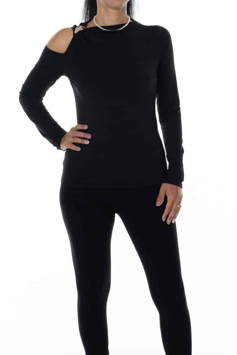 Λευκή μπλούζα ριπ μακρυμάνικη έξωμη με αλυσίδα στον λαιμό 2217 – Λευκό